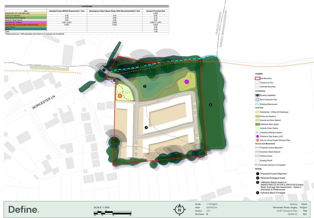 - A simple priority vehicle access junction from Worcester Lane, at the existing site access location.